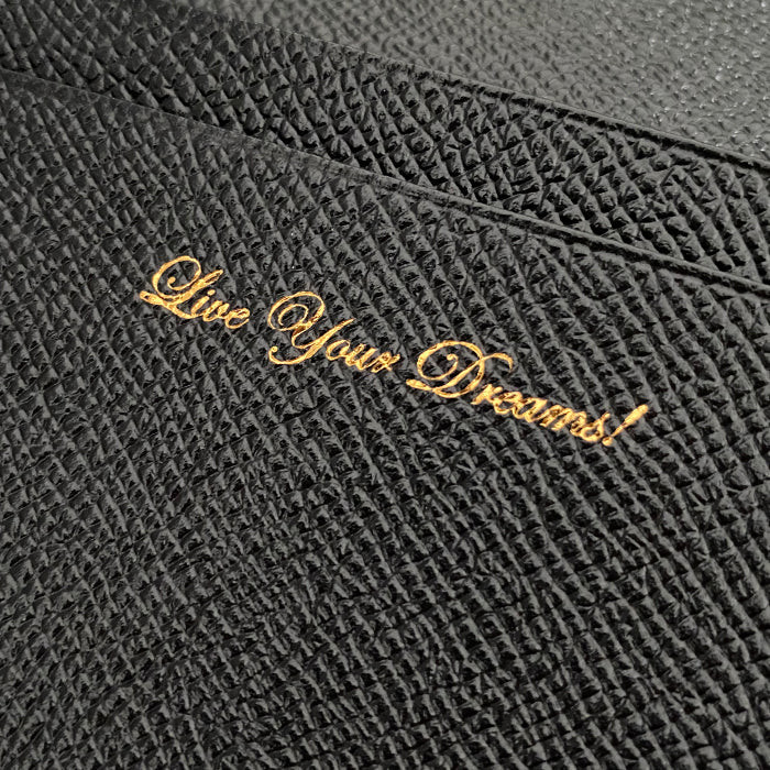人気の高かったゴールドの筆記体「Live Your Dreams!」の箔押しです。
